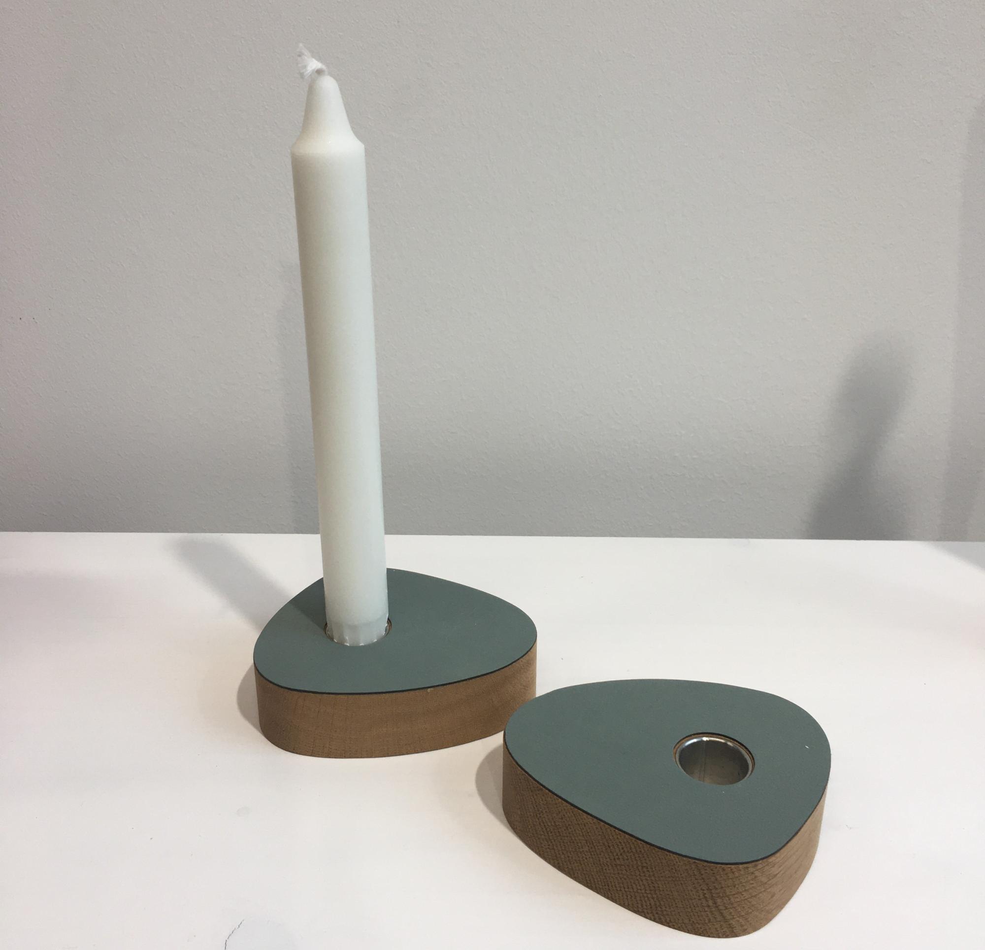 Lind DNA Lysestager Egetræ Sart Grøn Læder Sæt Fra LIND DNA
